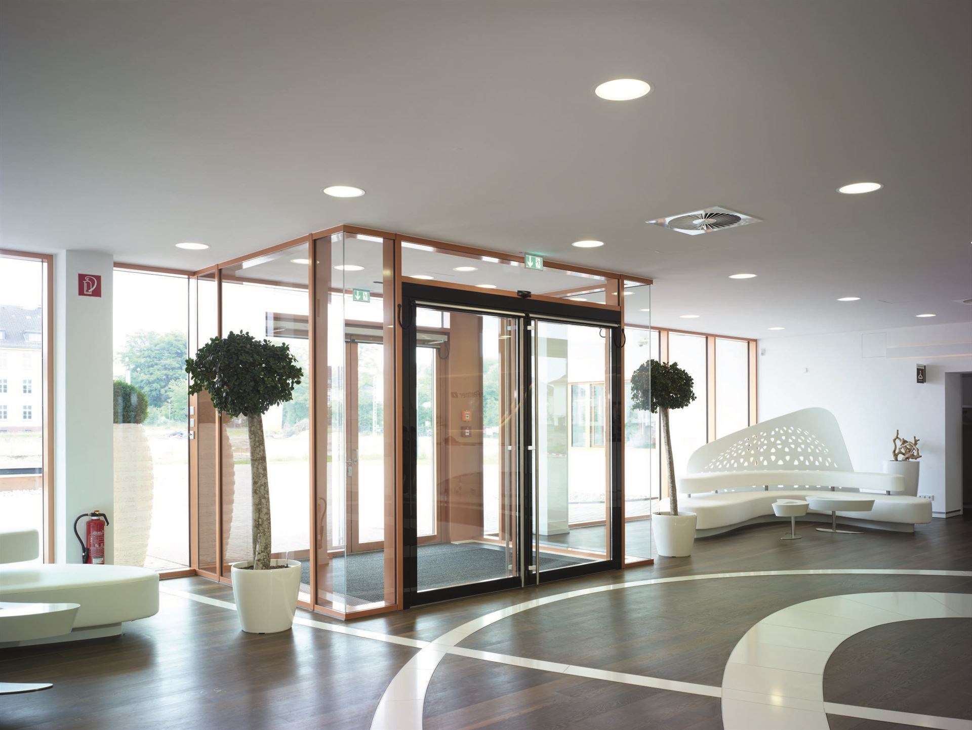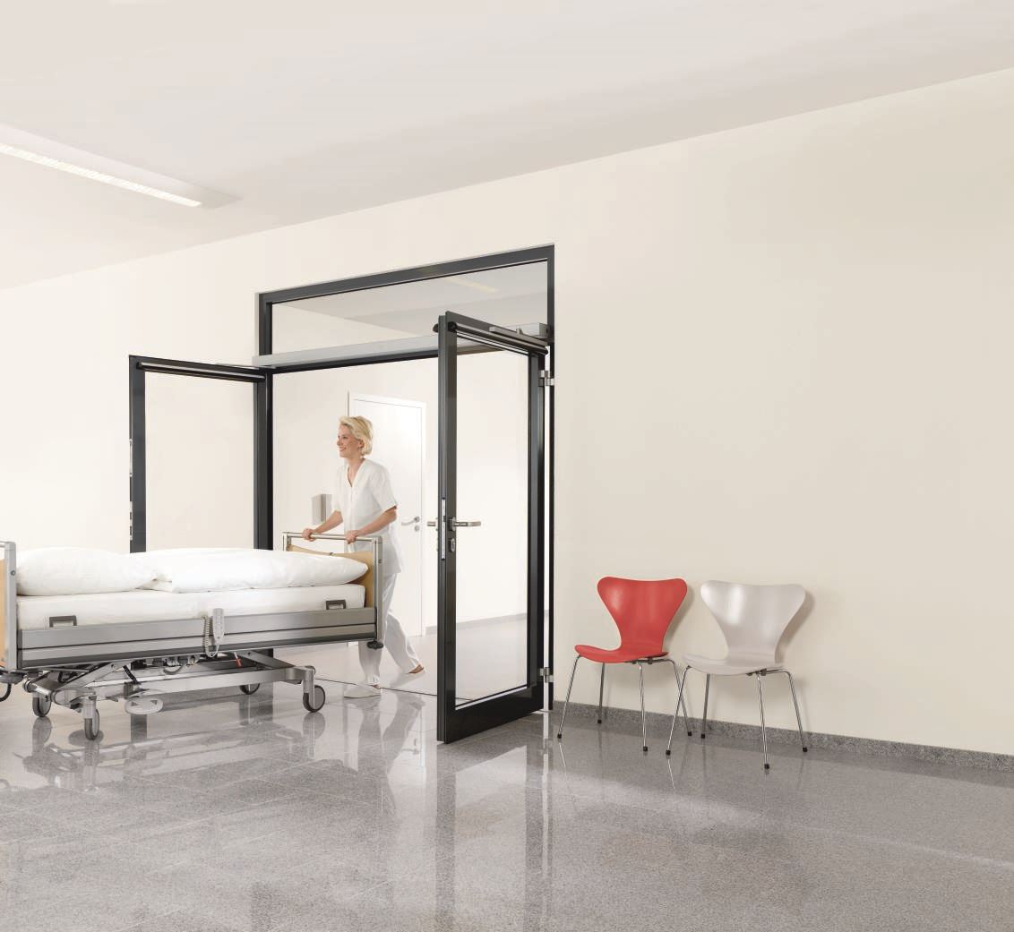 Einbau in verglaste Trennwände aus Profilen der Serie Lava 65-S entsprechend den statischen Anforderungen bei Profilauswahl und Verglasung möglich